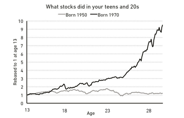 The person who grew up in poverty thinks about risk and reward in ways the child of a wealthy cannot fathom if he tried. The person who grew up when inflation was high experienced something the person who grew up with stable prices never had to. The investor who lost everything during the Great Depression experienced something the tech worker basking in the glory of the late 1990s can’t imagine. The Australian who hasn’t seen a recession in 30 years has experienced something no American ever has. You know stuff about money that I don’t, and vice versa. You go through life with different beliefs, goals, and forecasts, than I do. That’s not because one of us is smarter than the other, or has better information. It’s because we’ve had different lives shaped by different and equally persuasive experiences.